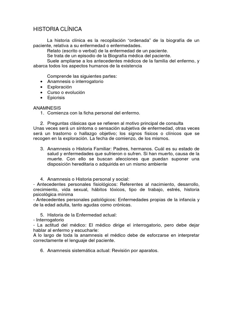 1 Historia Clinica Doc Historial Medico Clinica from imgv2-2-f.scribdassets.comAntecedentes de enfermedades, factores de riesgo, etc. El registro escrito es imprescindible para observar el crecimiento y el desarrollo del niño. Enfermedades, cirugias, tipo de tratamiento medico habitual (halopatia inicio de vida sexual activa, juegos infantiles, secretos guardados.