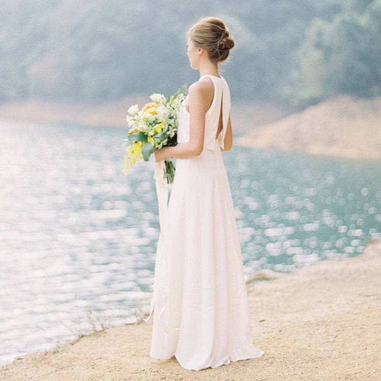 One Piece Soft Satin Simple Open Back Floor Length Wedding Dress Bridal Gown Marriage Registration White Dress Birthday Party Engage Evening Dress Fanweimei 1009 Shopee Malaysia